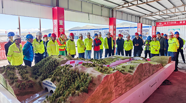在华邦建投集团那巴公路5标艾肯隧道出口现场,观摩团通过隧道沙盘直观了解工程整体布局、线路走向及周边复杂的地质环境。随后,一部精心制作的隧道建设专题片系统呈现了艾肯隧道从规划设计到当前施工阶段的全过程,那巴公路5标项目管理人员的详细讲解更让在场人员对工程概况、技术难点及建设成果有了更全面的认知。