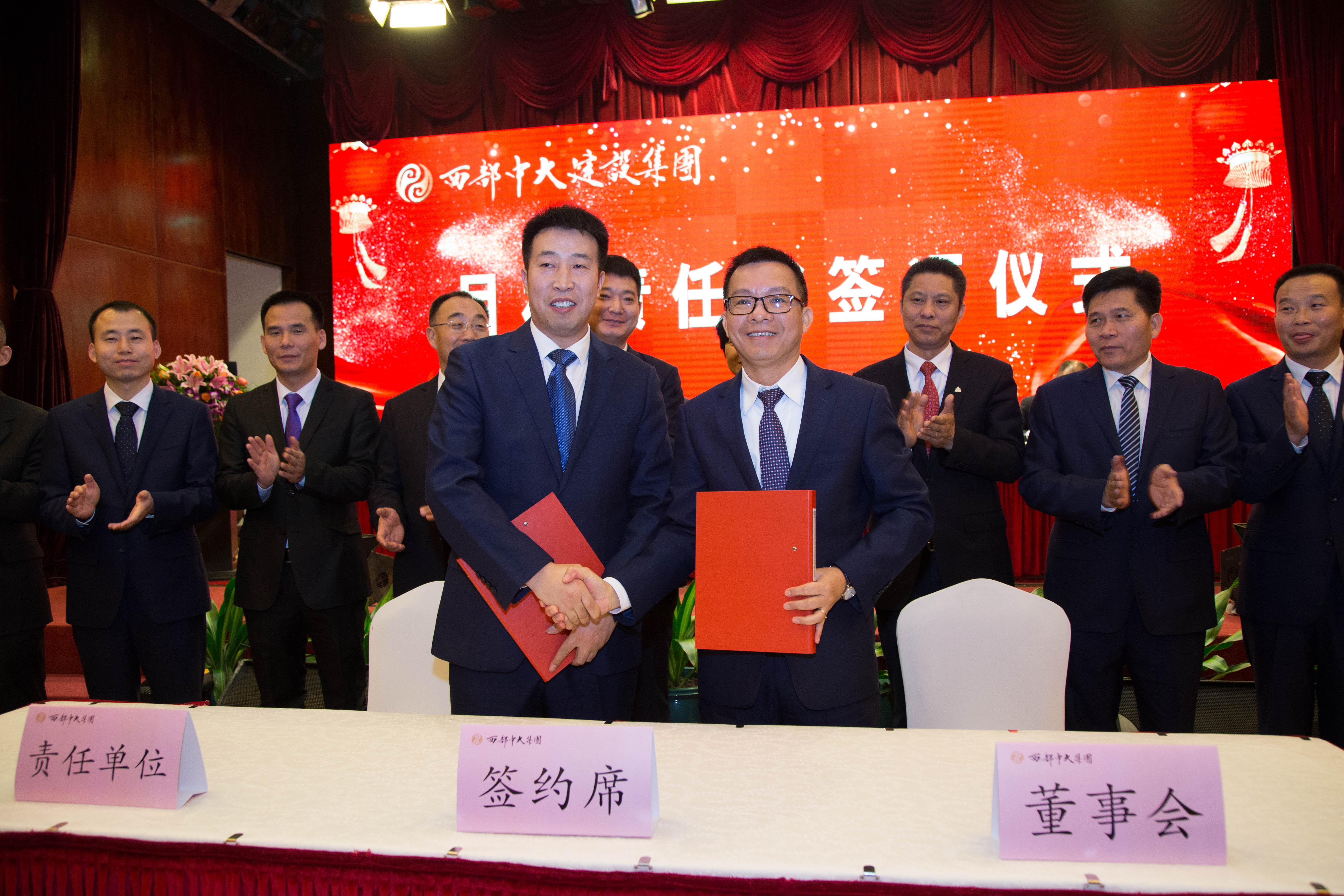 会上,集团公司董事杨川代表董事会与西部中大建设集团签订了目标责任书