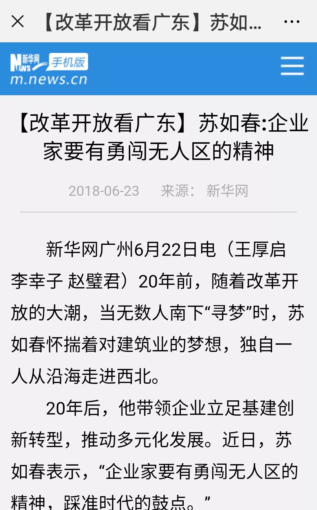 新华网专访华邦控股董事局主席、西部中大建设集团董事长苏如春 畅谈勇闯无人区的企业家精神