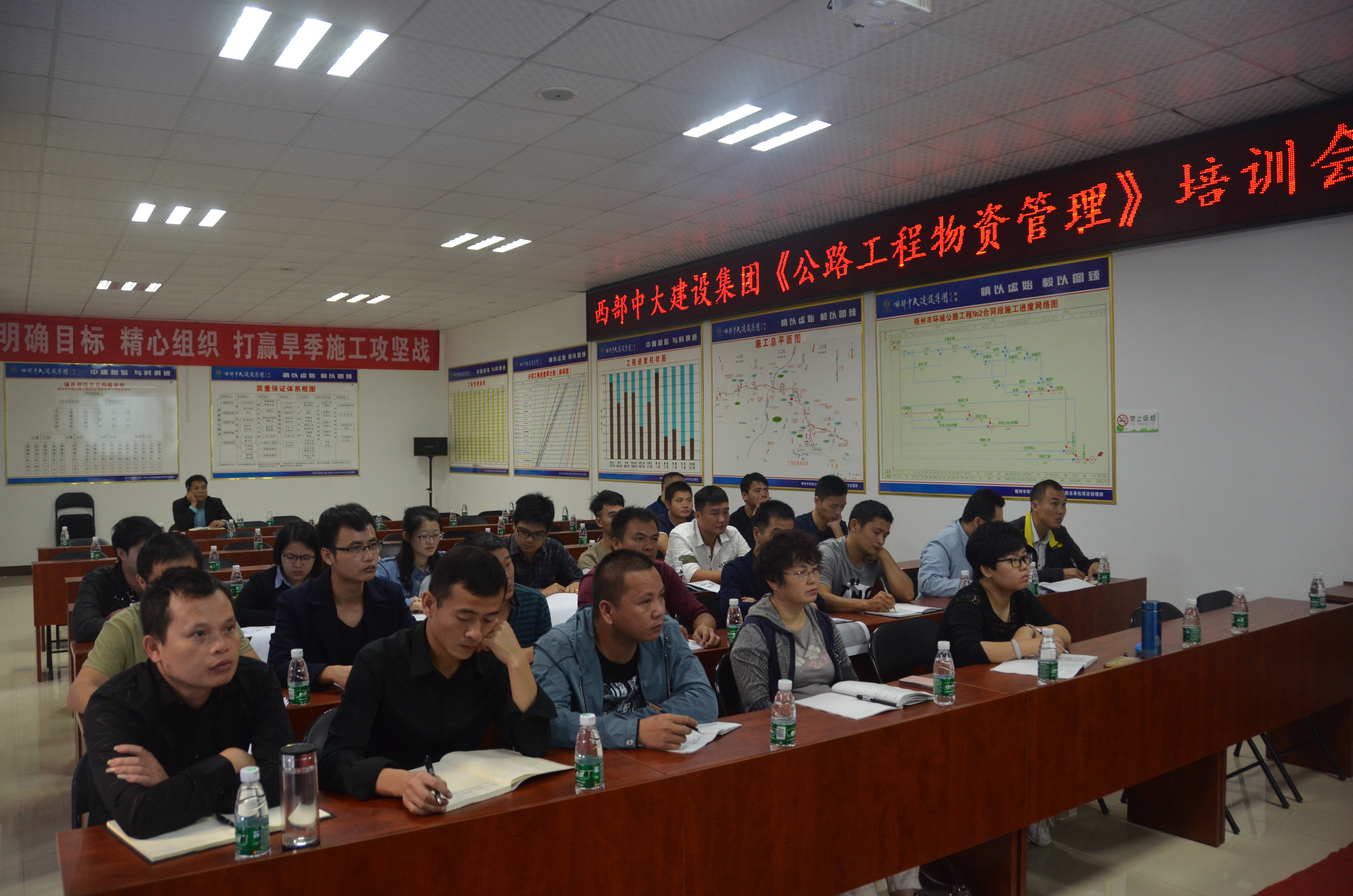 为进一步提高技术、物资管理人员的理论水平、业务能力,强化标准化管理意识,加强项目物资管理工作,规范项目物资采购、存储、收发、核算流程,促进集团公司整体管理水平的提升,11月10日上午,西部中大建设集团在梧州环城项目举办了公路工程物资管理培训班,集团公司有关部门和集团公司广西片区筹建、在建项目物资管理人员、技术人员参与本次培训。培训班邀请了中铁某局集团有限公司物资设备部部长、教授级高级工程师胡瑾主讲。