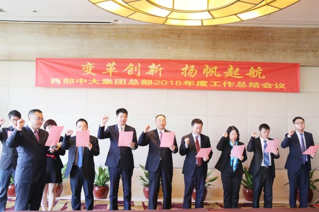 随后,各班子成员领导、各中心及部门负责人与集团公司总裁杨川签订2019年度目标责任书并宣誓:2019年,定将秉承“中庸和谐,与时俱进;慎以虑始,毅以图臻”的企业精神,众志成城,万众一心,把所有力量都聚焦在公司的业务发展上。
