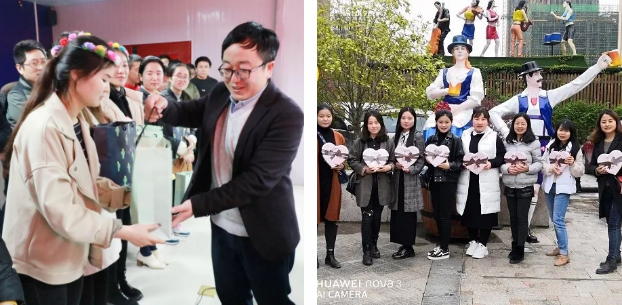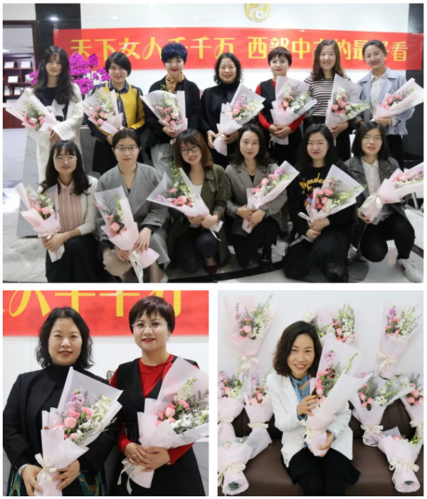 在集团公司总部,公司的男绅士们早早就在门口等待,他们给每一个上班的女神送一张贺卡和一束鲜花,而后拍照合影,道一声节日快乐。收到花的女神们低眉道谢,笑靥如花。总裁杨川给每一位女神送去节日的问候及祝福,并请所有女神吃一顿家常便饭。