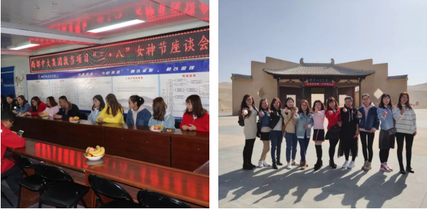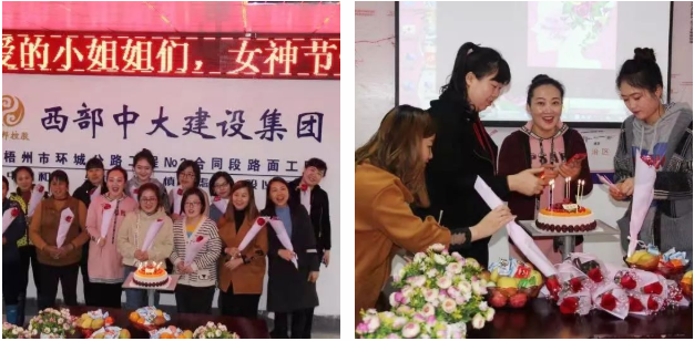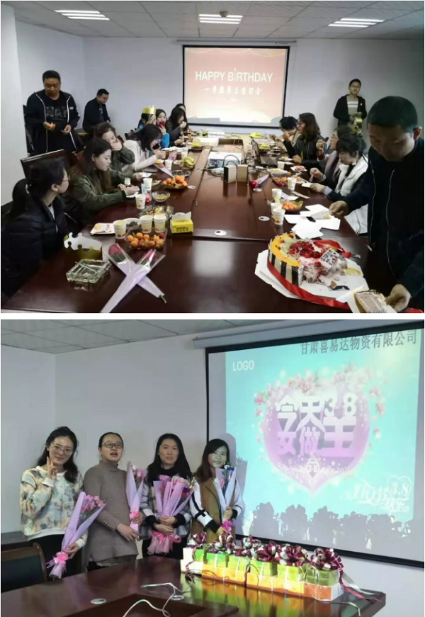 在甘肃兰州,西部同力与信尔达公司举行联谊以员工生日会的形式共庆三八(上图上);在喜易达,公司给每一个女神发放了小礼物,并在工作群对女神们们进行慰问及关怀。(上图下)