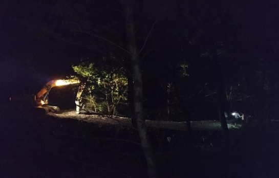 9月1日下午,项目部紧急征用的挖掘机到位,开始连夜修筑,由于河道内石料不足,项目部又组织运渣车辆从福岭出口紧急调运石渣。保进度,更要保安全,国道交叉路口施工作业环境复杂,项目部安排专人24小时值守,疏导交通,现场各项工作紧张而有序的进行。