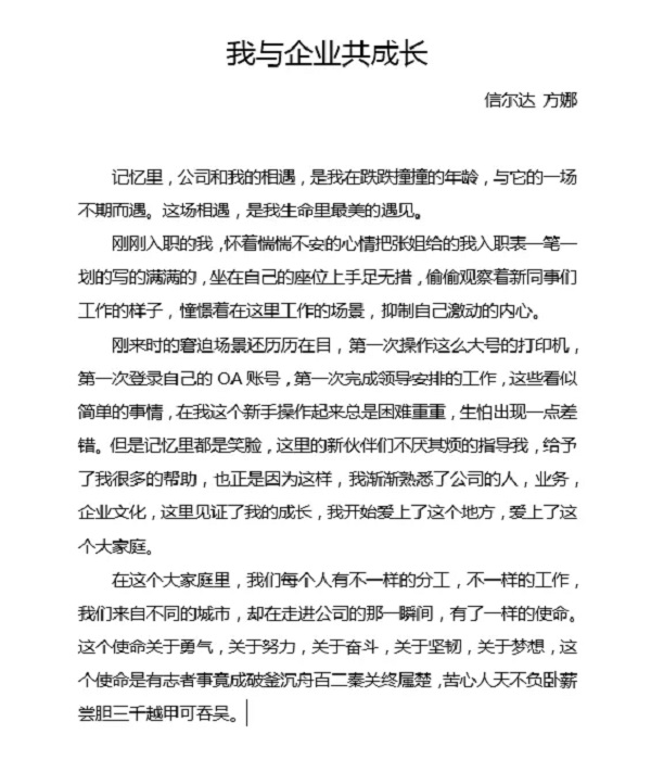 为庆祝新中国成立70周年,扎实开展“不忘初心、牢记使命”主题教育,进一步激发广大员工的爱国情怀和敬业奉献的精神,集团公司开展了征文比赛,现已落下帷幕。在选手们的努力拉票及评委们对参赛作品的认真审评后,比赛结果出炉啦!