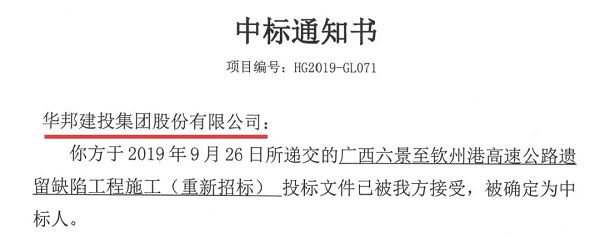 金秋十月,经一番辛勤耕耘,华邦建投集团主营业务再结硕果。继储备林和房建业务突破后,10月22日,集团公司中标广西六景至钦州港高速公路遗留缺陷工程施工项目。此次中标意味着集团公司经营业务再次拓展,正式进军公路养护市场。