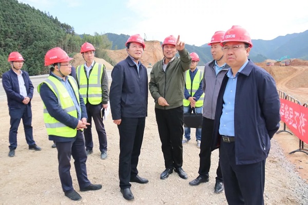 考察团还前往华邦国际中心项目、华邦美好家园养老集团中山七孝慈轩、广西桂林至柳城高速公路项目考察。在桂柳三标,考察团一行认真听取了项目负责人对施工现场的基本情况、形象进度、安全生产与施工计划方面的汇报。胡秉军对项目概况、施工难点、亮点工程等问题进行了详细解说。