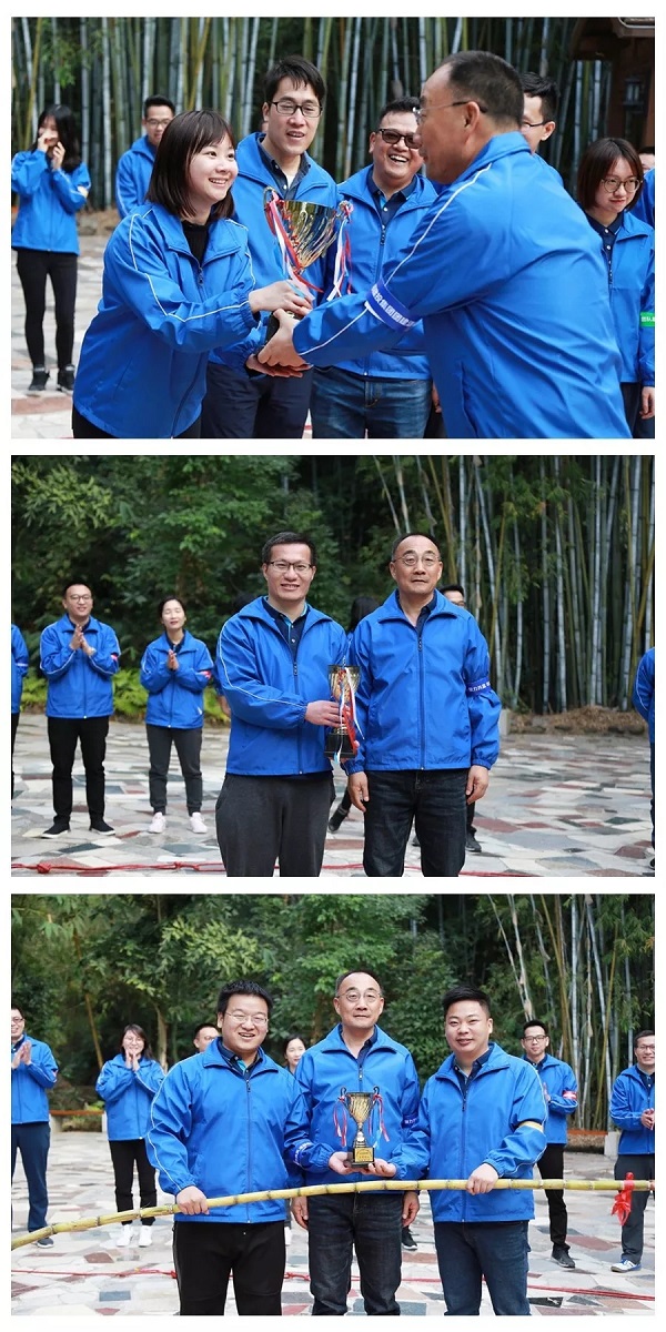 经过两个多小时的激烈比拼,此次团建活动接近尾声,在“动力圈”中,在所有人的簇拥下,集团公司总工程师严培武为获胜的团队颁发奖杯,从颁奖环节队长脸上洋溢着笑容就可以看出,大家意犹未尽。