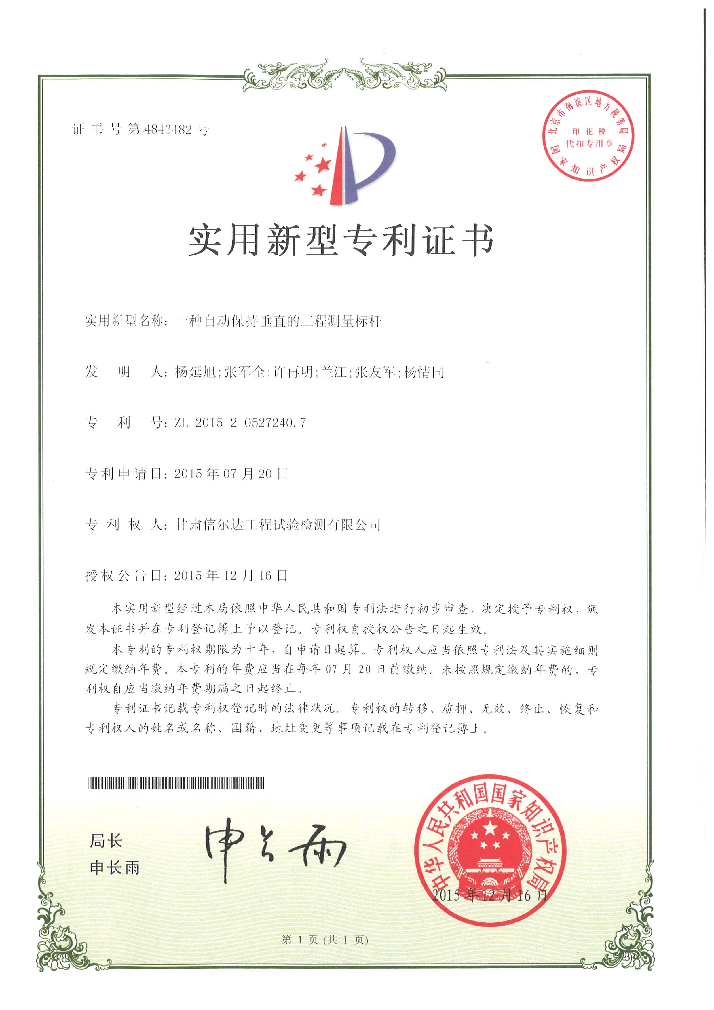 一种自动保持垂直的工程测量标杆