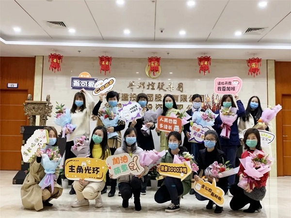 “灼灼桃花十里,不如建投仙女。”人间三月,正是桃花盛开的季节。十里春风,唯笑容与女神不可辜负。在华邦建投广州管理总部,每位女神都能收到不老男神送出的一束花和一个精心准备的礼物。拍合照的时候,虽说受疫情影响,不能集聚,大家都戴着口罩,看不到脸上的酒窝,但通过女神眼角洋溢着的笑容,我们也能感受到甜甜的春风。