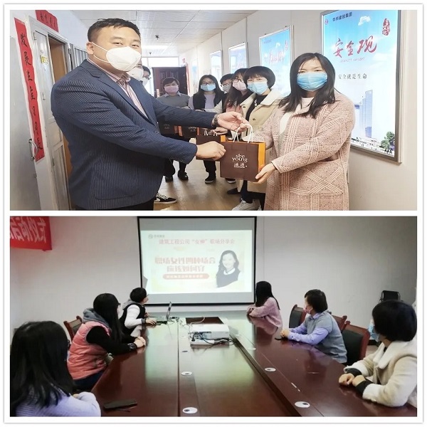 在建筑工程公司,暖男们为奋斗在工作岗位的“女神”送上节日的礼物,并向身边每一个“她”致一份敬意。在“女神”职场分享会环节,大家均分享了特殊时期的各种“宅生活”,并从中get各式“宅技能”,如解锁美食料理,研读喜欢的书,钻研自己兴趣爱好,让生活也变得有仪式感。