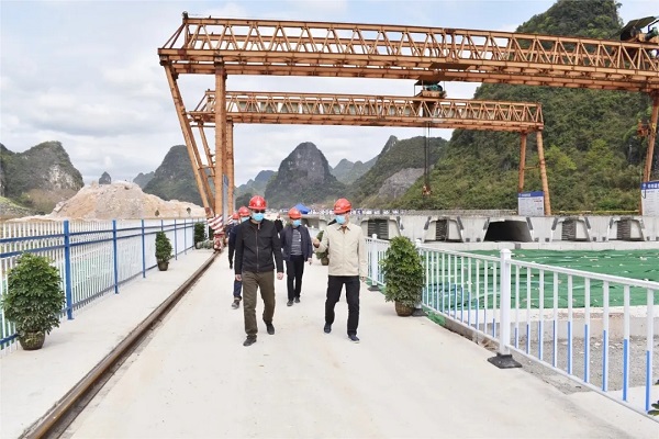 在桂柳项目,检查组先后走访了桂柳三、四、五标项目部驻地、隧道、路基、碎石场及预制梁场等施工现场,检查了各项目的复工复产情况,详细了解复产后现场施工的安全、质量、人员到场和疫情防控情况,认真听取了各项目部负责人对复工复产工作开展、疫情防控措施落实以及当前建设中存在的问题等情况的汇报。