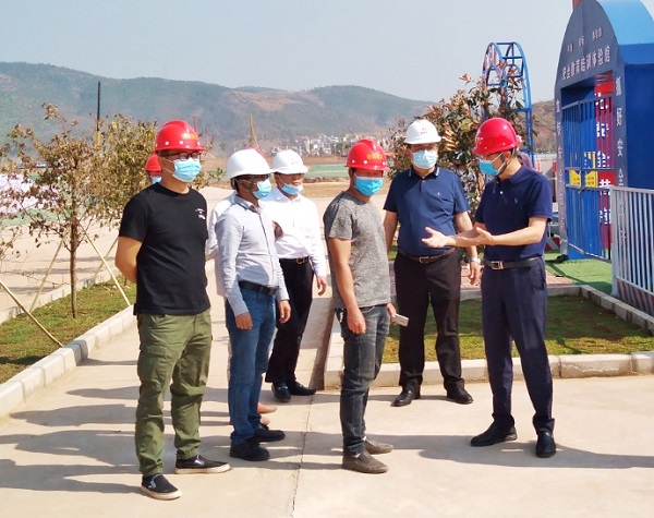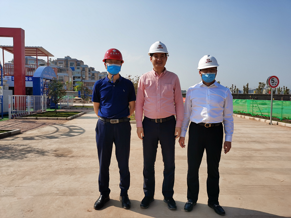2020年3月30日下午,楚雄州交通投资开发有限责任公司董事长赵煕宇及开发板块项目经理、总工程师一行莅临楚雄民族中学搬迁建设项目,对现场防疫、安全文明施工等多方面进行观摩学习和交流指导。乐鱼网站执行总裁、云南华邦林业发展有限公司董事长蔡继荣,云南华邦林业发展有限公司执行总经理张志强、副总经理毕绪文全程陪同。
