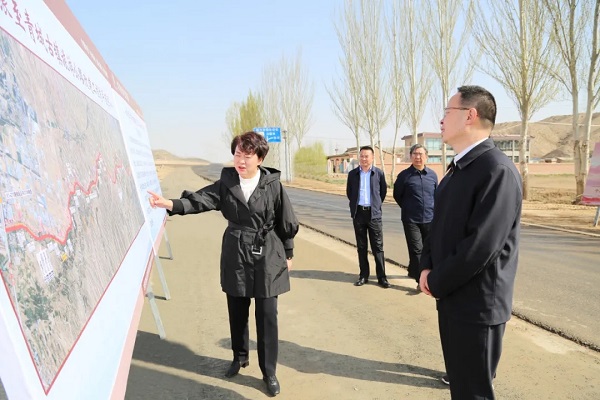 4月23日,甘肃省委副书记孙伟到华邦建投集团承建的白银至青城古镇旅游公路改建工程施工现场调研,看望施工人员,了解项目进度、复工复产情况。白银市委书记苏君陪同调研。
