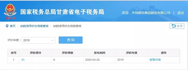 4月26日,国家税务总局甘肃省电子税务局发布信息显示,乐鱼网站获评2019年纳税信用A级单位。此次评定中,华邦建投集团与下属子公司甘肃喜易达物资有限公司、西部同力机械工程有限公司、甘肃信尔达试验检测有限公司均被评为“纳税信用A级单位”。公司已连续三年获得A级纳税人信用评定,这是税务机关对公司依法纳税、诚信纳税工作的高度肯定及认可。