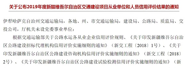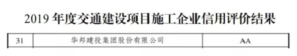 5月20日,新疆自治区公布了2019年交通建设项目从业单位信用评价结果,华邦建投从参评的79家土建及交安设施从业单位中脱颖而出,荣获综合信用综合评价AA级。根据《新疆维吾尔自治区公路建设施工企业信用评价实施细则》,自治区交通施工企业信用评价分为五个等级:AA、A、B、C、D,此次华邦建投荣获信用评价AA等级,是信用评价最高等级。