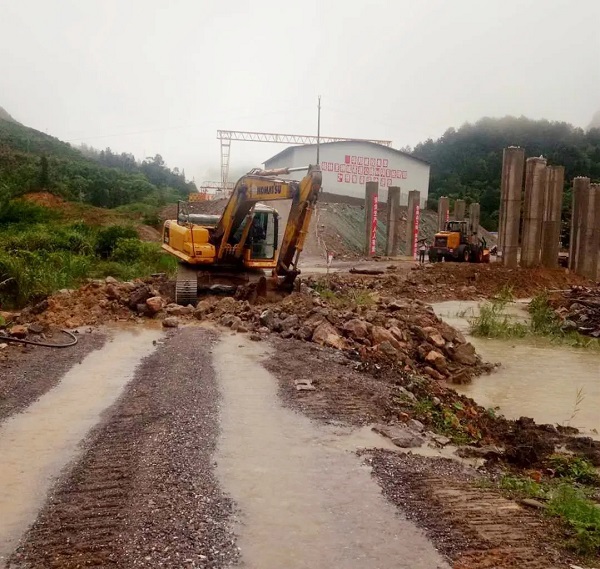 大雨未停,桂柳各标段积极部署,组织对全线施工点安全隐患、防汛工作进行一一排查,要求各施工点要高度重视当前严峻防汛形势,密切关注雨情、汛情,提前做足预案,确保现场人员、机械安全,并及时组织机械挖开排水,确保排水通畅,减少现场淹水风险。但山洪凶猛,还是造成了部分场站被淹,便道冲毁,造成了一定的经济损失。