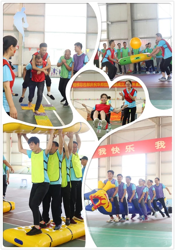 在拓展活动正式开始之前,教练通过一系列轻松活泼的团体热身游戏,建立相互信任的和谐团队氛围,通过各自报数来完成4支队伍的分配。经过推选队长旗手、策划队名、编排队歌等,一个个有气势的队名、一句句响亮的口号、一首首嘹亮的队歌逐一亮相,“青春华邦”“太极祥云”“精英”“红太阳”4支队伍应运而生。4支队伍分别摆出设计好的团队造型,充分展现了桂柳总包部蓬勃向上的精神风貌。