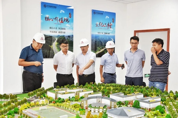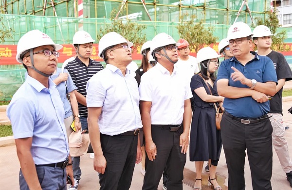 在参观完民中项目沙盘后,章瑞华一行深入各工区详细了解民中项目现场施工情况、项目计划安排、安全质量、文明施工等相关工作。每到一处,章瑞华都针对工作亮点和可借鉴处与陪同人员进行交流。