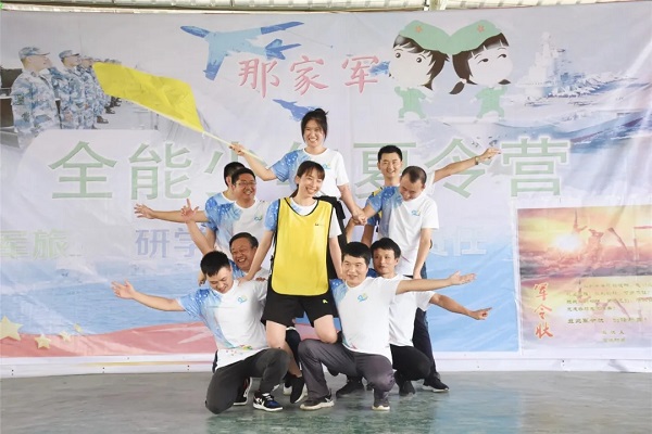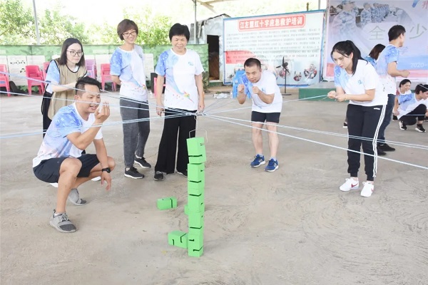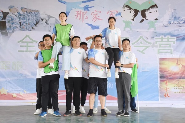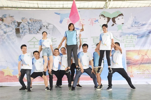 打造“千层塔”项目是摆在新组建团队面前的第一个挑战。如何在最短的时间内搭建一座“千层塔”,还能保持塔的完整?四支队伍开起了碰头会,并推选出了项目行动指挥官。大家分工合作,相互配合,在指挥官的指挥及调动下,千层塔越搭超高。