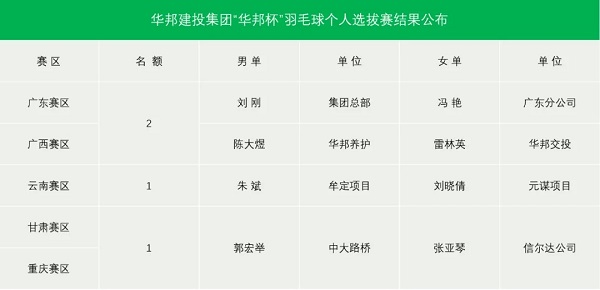 ▲ “华邦杯”羽毛球个人选拔赛出线结果