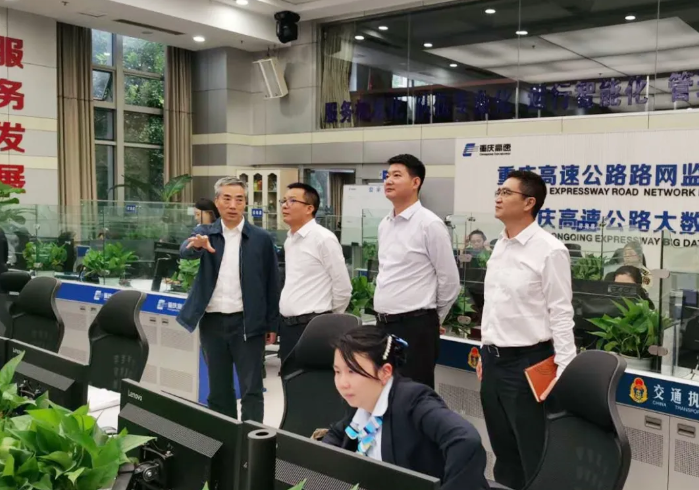 ▲ 田世茂向杨川一行介绍重庆市高速公路大数据中心
