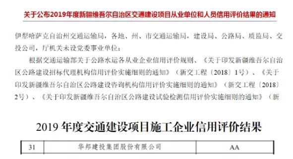 ▲ 华邦建投子公司华邦信尔达连续六年荣获公路工程市场信用A级评价