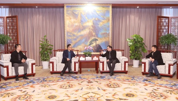 ▲ 杨川(左二)与田贵祥(右二)探讨合作模式
