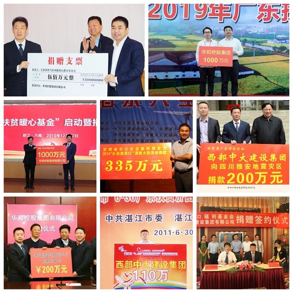 华邦发源于甘肃,得益于陇原大地的深情滋养。一直以来,华邦在做好自身经营、管理和发展的同时,始终将社会责任提高到自身发展的战略高度,以产业致力民生,通过公益基金、精准扶贫、建校助学、抗震救灾等方式践行社会责任,至今已捐款捐物逾亿元,用实际行动诠释责任与担当。