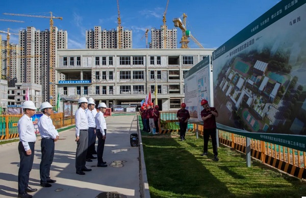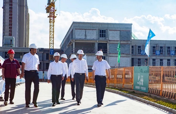 来到榆中县教育园区建设项目,苏如春同榆中县副县长许先文一同走访了项目现场,听取了有关负责人汇报,了解了项目建设情况,对项目施工管理取得的成就表示赞赏。