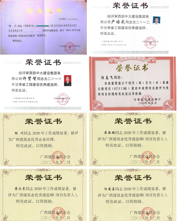 一直以来,华邦人在奋斗中与华邦共同成长、彼此成就,成就更好的公司,也遇见更好的自己。华邦建投集团员工获得近50项国家级和省级荣誉表彰:杨川荣获“国家优质工程奖突出贡献者”“甘肃省工程建筑优秀建造师”“甘肃省优秀项目经理”“广西建筑业优秀企业经理”等荣誉称号;许贤智获得“甘肃省建设科技进步奖”“甘肃省优秀项目经理”“公路建设先进个人”等称号,胡秉军、严培武、李莉、薛明星、苏永青、苏海鹏、任发喜、王强、谢应赞等获得甘肃、广西“建筑业优秀建造师”……每一份荣誉都是对华邦人工作能力与职业价值的肯定,也是员工与企业共同成长、相互成就的最好印证。