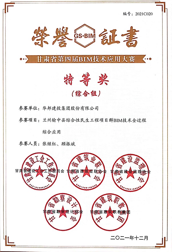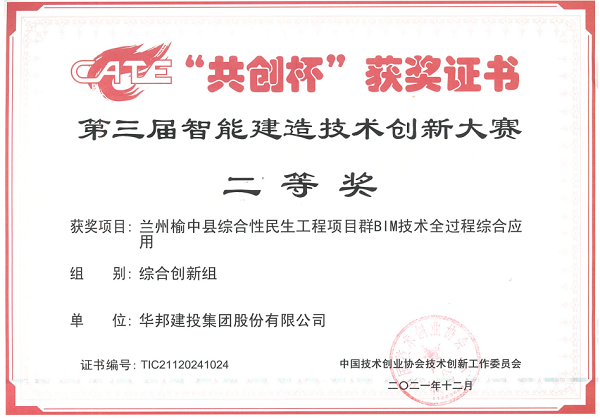 近日,由中国技术创业协会技术创新工作委员会、甘肃省建设工会工作委员会传来喜讯,华邦建投集团参赛项目“兰州榆中县综合性民生工程项目群BIM技术全过程综合应用”荣获第三届“共创杯”智能建造技术创新大赛二等奖、甘肃省第四届BIM技术应用大赛综合组特等奖。两项荣誉的获得,不仅是对华邦建投集团榆中教育园区、榆中医院项目BIM新技术创新应用的肯定,也充分展现了华邦建投智能建造水平。