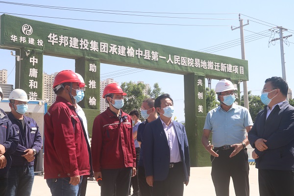 5月24日,甘肃榆中县委书记冯月旺一行调研华邦建投集团榆中县第一人民医院易地搬迁新建项目(简称:榆中医院项目),副县长许先文,榆中城乡发展建设投资(控股)集团有限公司董事长赵云刚,榆中医院项目生产副经理许先忠、总工程师柴晓明陪同调研。