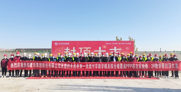近日,由华邦建投集团承建的甘肃永昌县第一高级中学教学楼及综合楼建设PPP项目(以下简称:永昌一中项目)实验楼、2#教学楼主体封顶,标志着项目建设取得阶段性成果。