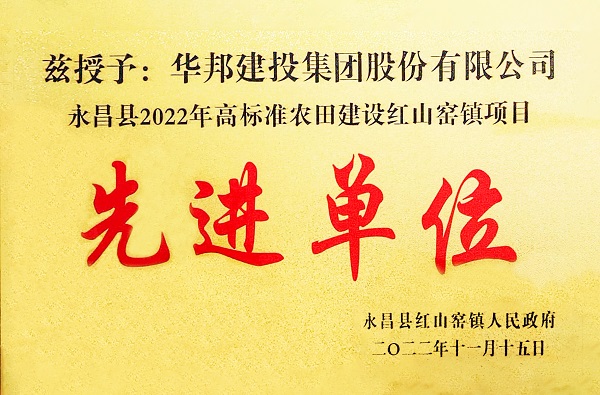 红山窑高标准农田项目获2022年度“先进单位”称号