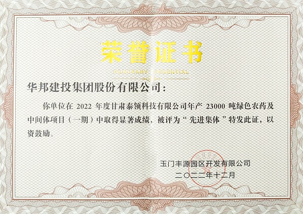 近日,华邦建投集团赤金人居环境项目、清泉人居环境项目、红山窑高标准农田项目、玉门泰领厂房等在陇项目相继荣获政府、业主单位2022年度“文明工地”“先进单位”“先进集体”等称号,为公司赢得了良好声誉。