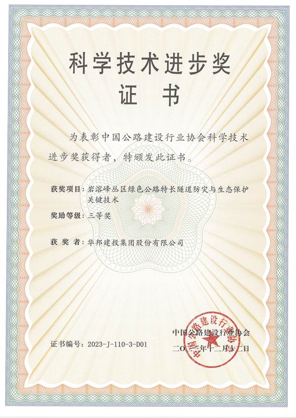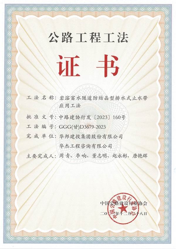 日前,2024年公路建设高质量发展暨科技创新大会在北京召开,华邦建投集团受邀参会并喜获1项省部级工法、1项省部级科学技术进步奖。《岩溶富水隧道防结晶型排水式止水带应用工法》与《岩溶峰丛区绿色公路特长隧道防灾与生态保护关键技术》均是依托华邦建投集团承建的广西桂林至柳城高速公路泗顶长隧道所研发的科技成果。通过关键技术研究,研发出一种防结晶型排水式止水带,可以有效防止峰丛地貌岩溶区富水隧道由于渗水导致的结构开裂病害,降低隧道运营期间行车安全风险,延长隧道使用寿命,具有显著的社会、经济及环境效益。
