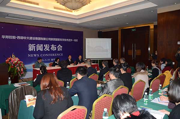 在新闻发布会上,集团总裁周雍玫、总工程师严培武就集团发展情况及荣获国家科学技术进步一等奖情况进行介绍。本次以西部中大建设集团有限公司荣获国家科学技术进步一等奖新闻发布会为主题,全景式展现华邦控股集团、西部中大建设集团的良好企业形象,形成全媒体,无盲点的一次立体宣传企业品牌形象,形成一次提升企业社会美誉度和知名度及影响力的集成大型报道。
