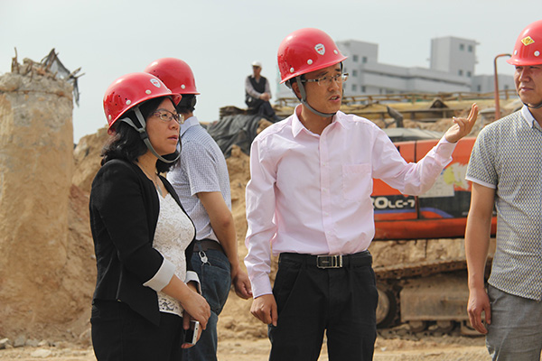 2015年6月12日上午,集团公司总裁周雍玫、副总裁张晶晶等领导一行,在第一工管中心总经理张宏、副经理梁世军的陪同下对北环路项目部整体工程进行调研。