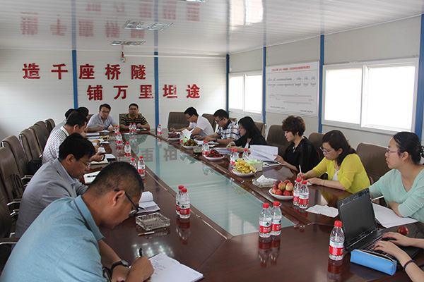 在北环路施工现场,第一工管中心总经理张宏针对目前北环路的建设情况,以及项目在施工进展过程中存在的问题作了详细的汇报。随即,周总裁一行至项目部会议室召开了北环路项目推进会议。