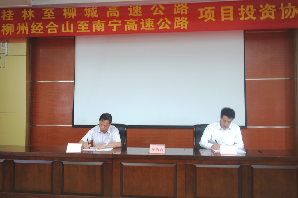 李小林副厅长与胡秉军总裁签订《广西桂林至柳城高速公路项目投资协议》