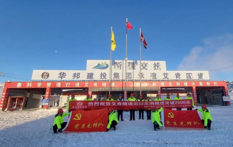 当日,艾肯达坂冰天雪地,气温低至 -42℃,而隧道内灯火通明,气温在15℃,工人们分布在各个定点紧张有序作业,施工车辆穿梭往来,呈现出一片热火朝天的景象。华邦建投集团承建的那巴公路5标项目全长8.059公里,桥隧比高达93.7%,其中艾肯隧道左洞长7445米,右洞长7405米,斜井长1180米,采用钻爆法施工。该隧道地处和静县境内海拔2640米的天山艾肯达坂,最低温度零下四十多摄氏度,冰雪期长达8个月,自然环境恶劣。隧道穿越三条断裂带,不良地质总长1355米,占总洞长的18.3%,具有地质复杂、单向纵坡、高寒高海拔、渗水量大等施工难点。