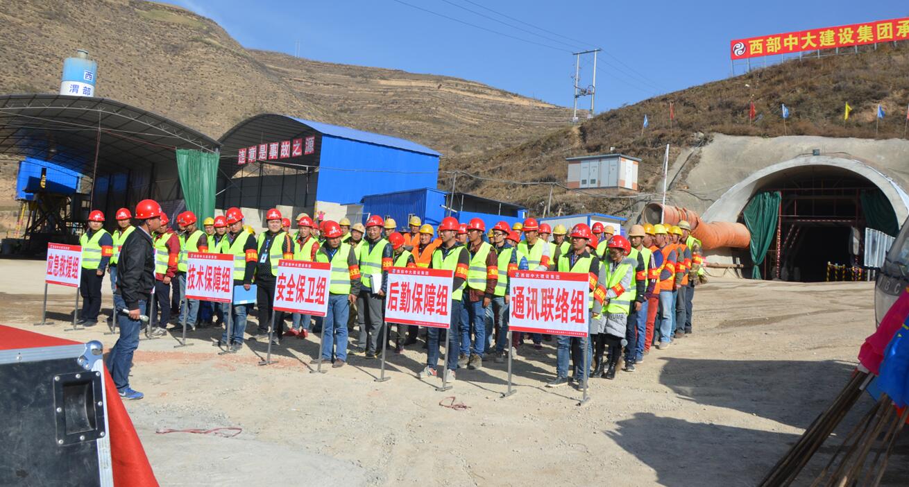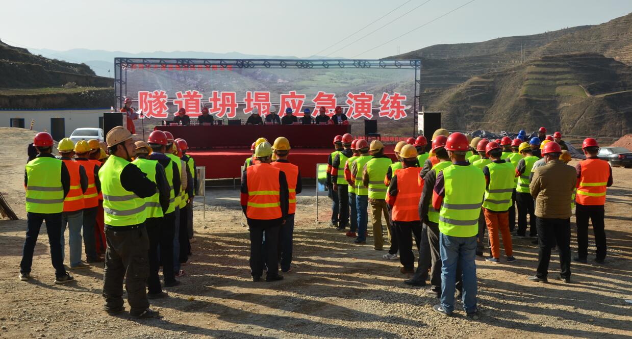 为进一步加强安全生产管控工作,在集团公司的统一部署和项目业主、监理单位的支持下,11月16日,集团公司承建的渭武高速土建第十二合同段项目经理部在渭武十二标尖尕山隧道施工现场组织开展了隧道防坍塌应急救援演练。