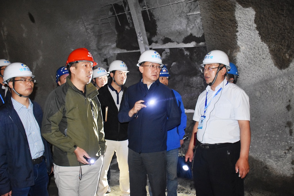 刘建勋副厅长(右二)在西部中大建设集团总裁胡秉军(左二)的陪同下视察当金山隧道施工情况